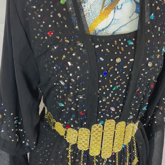 Kurdischer Luxus-Kaftan in Dunkelblau – Handverziert & mit Glitzersteinen