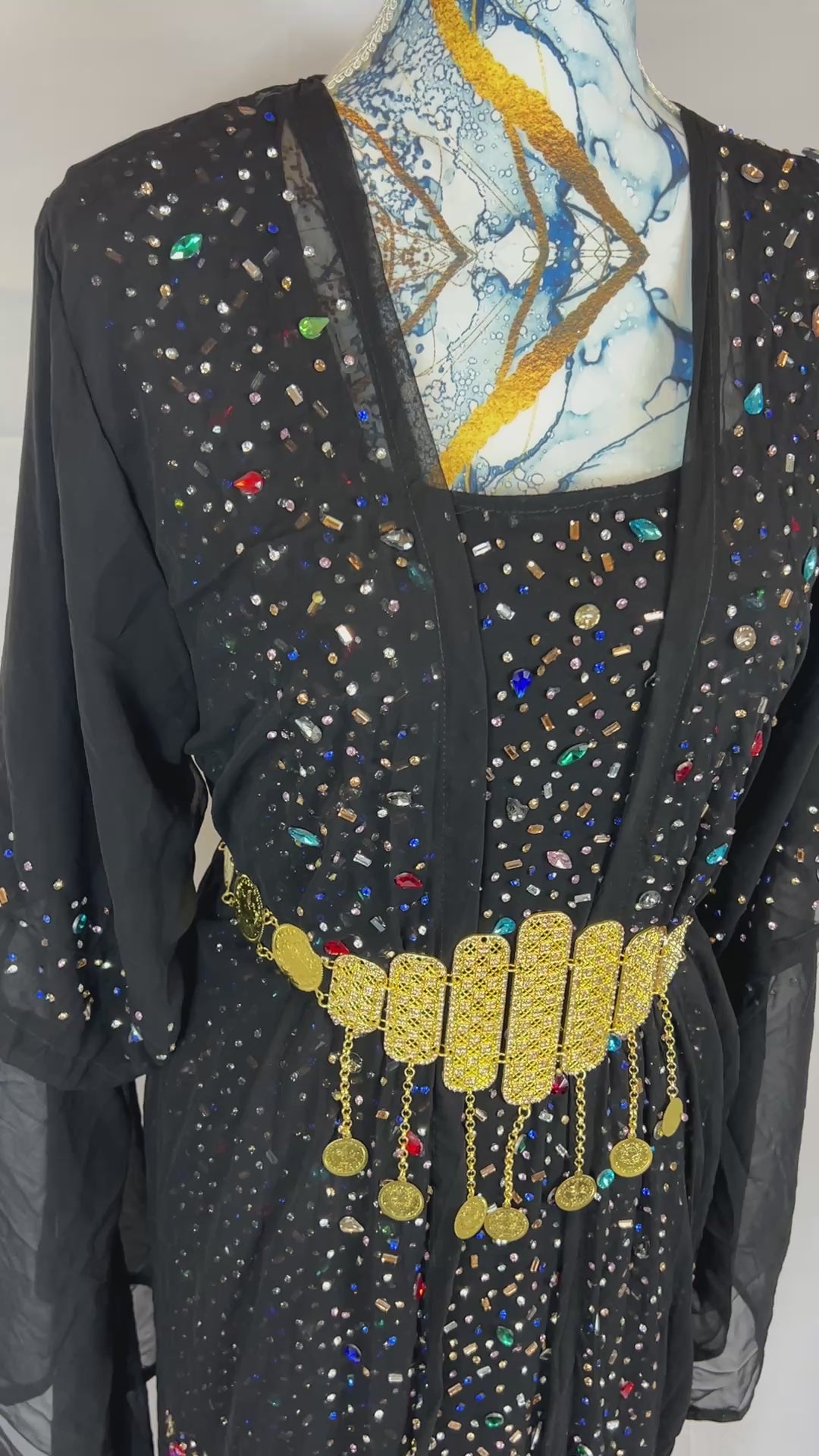 Verzierung: Handbestickte Glitzersteine in verschiedenen Farben für ein lebendiges, schimmerndes Erscheinungsbild