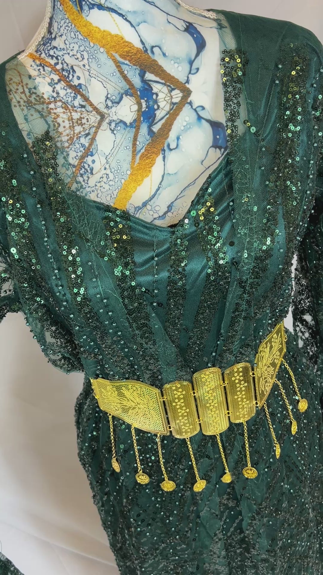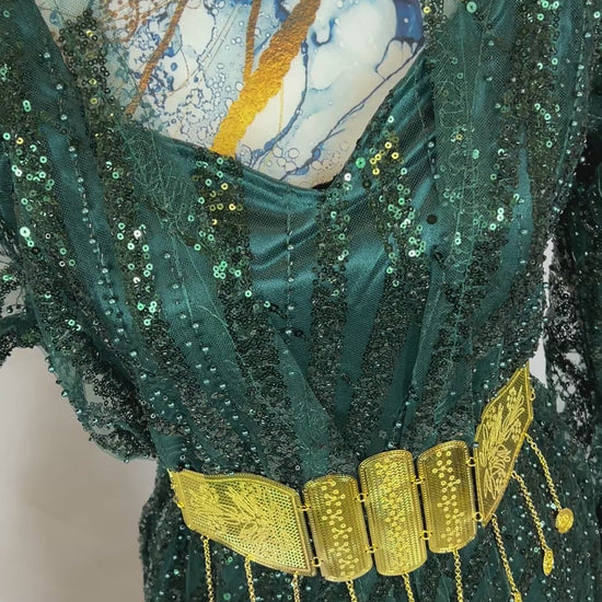 Kurdischer Luxus-Kaftan in Smaragdgrün – Handverziert & mit goldenem Zinar-Gürtel